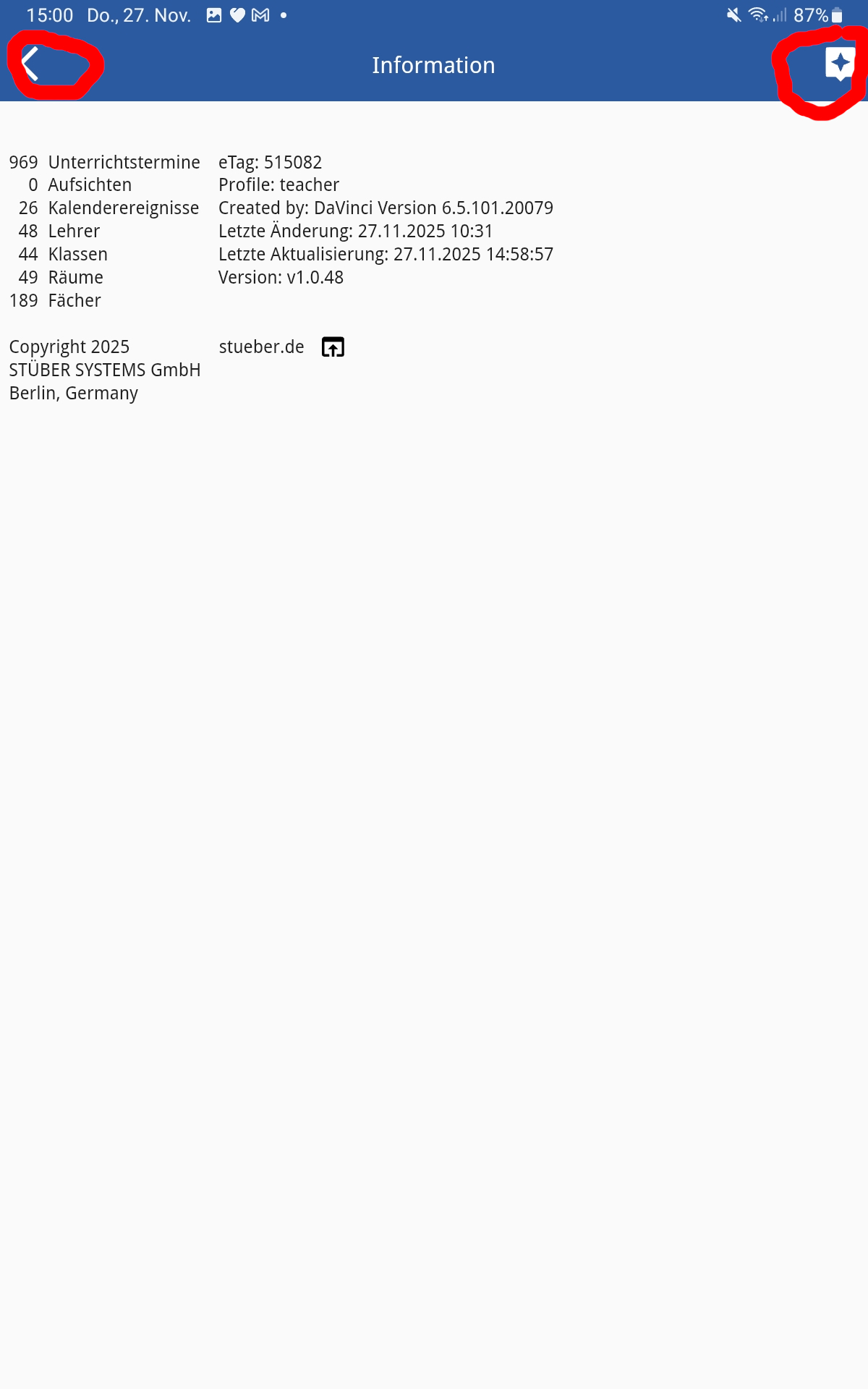 Oder auf das „i“ tippen und es kommt eine Info-Seite.