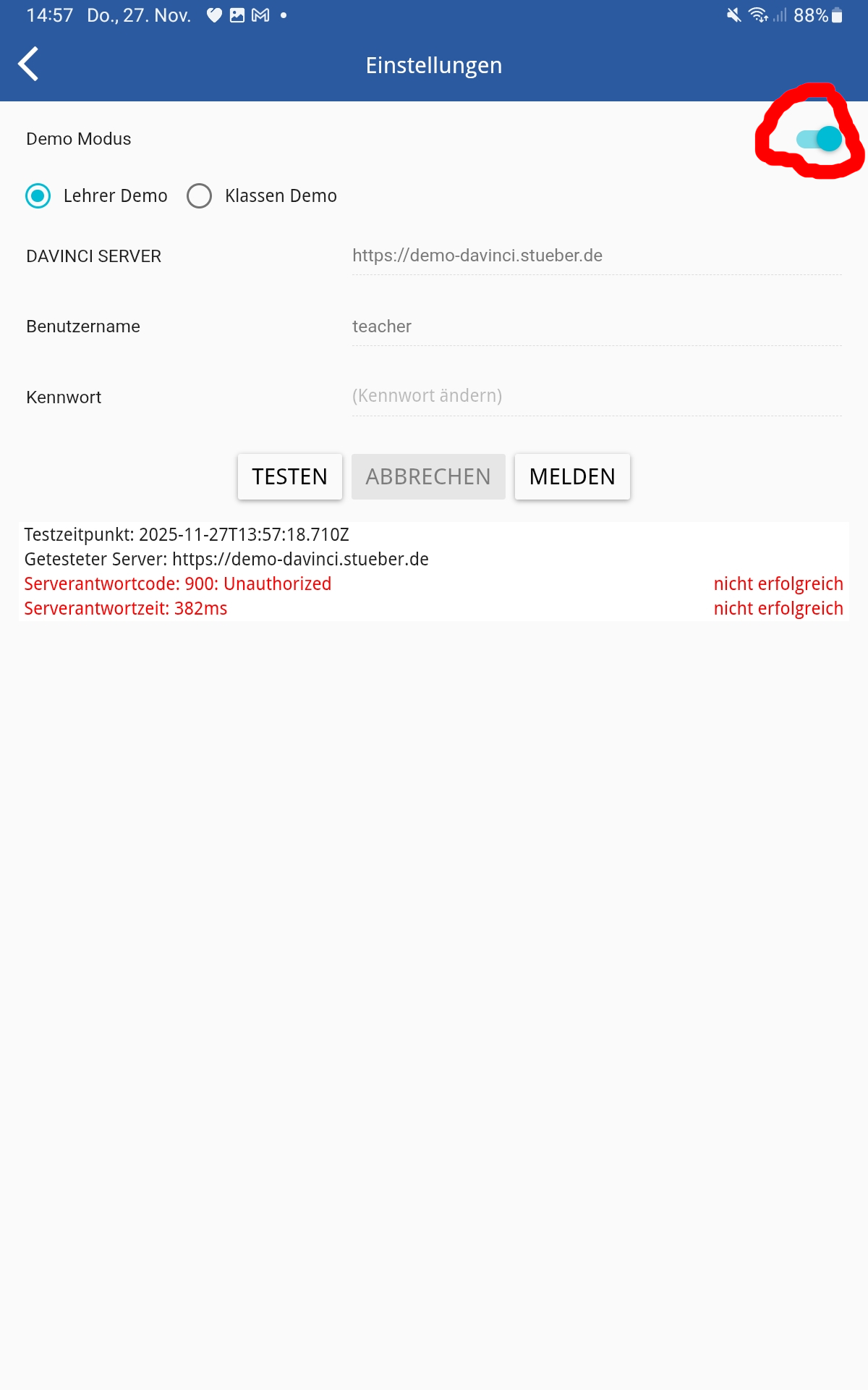 Demo-Modus aus schalten.