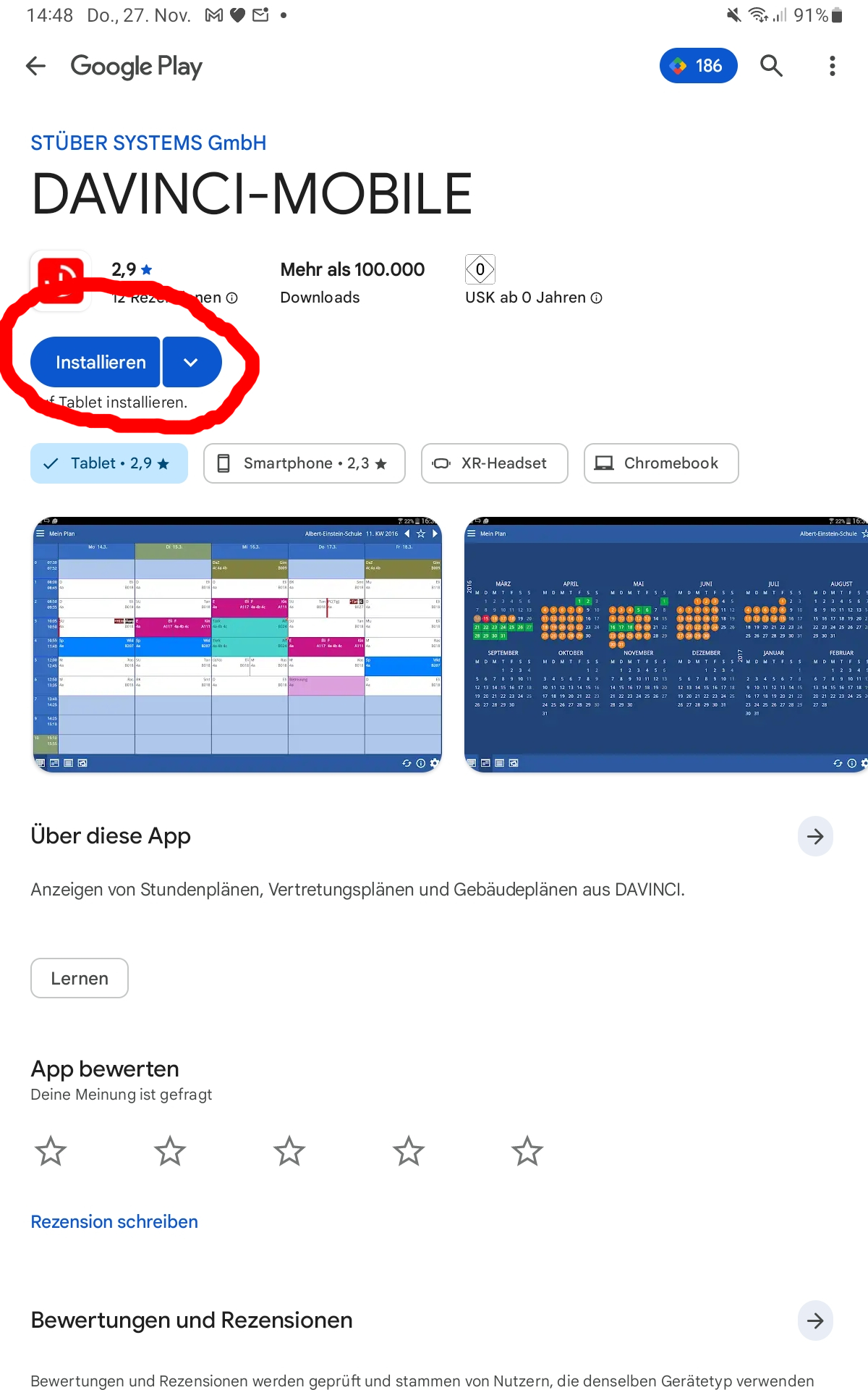 Im Playstore/Appstore auf „Installieren“ tippen.