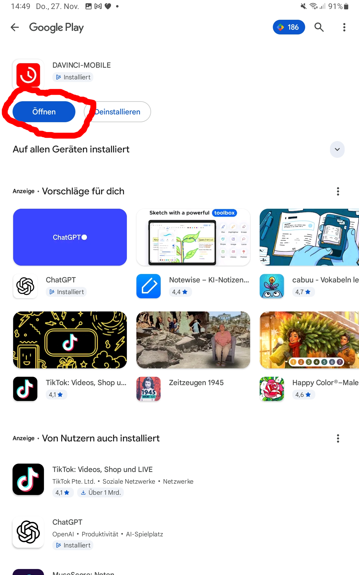 Nach der Installation die App öffnen.