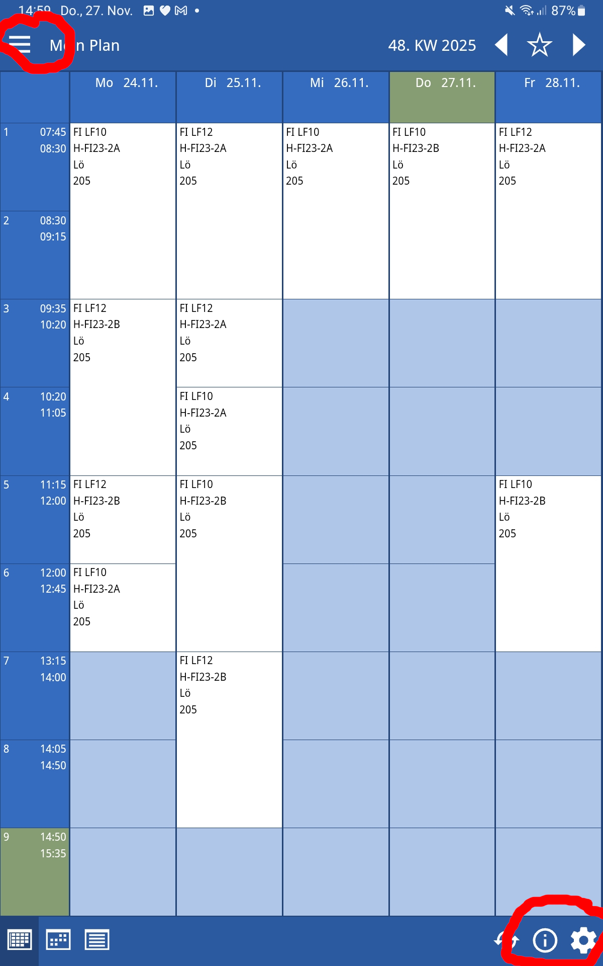 Links oben kann man die verschiedenen Klassen / Räume auswählen.